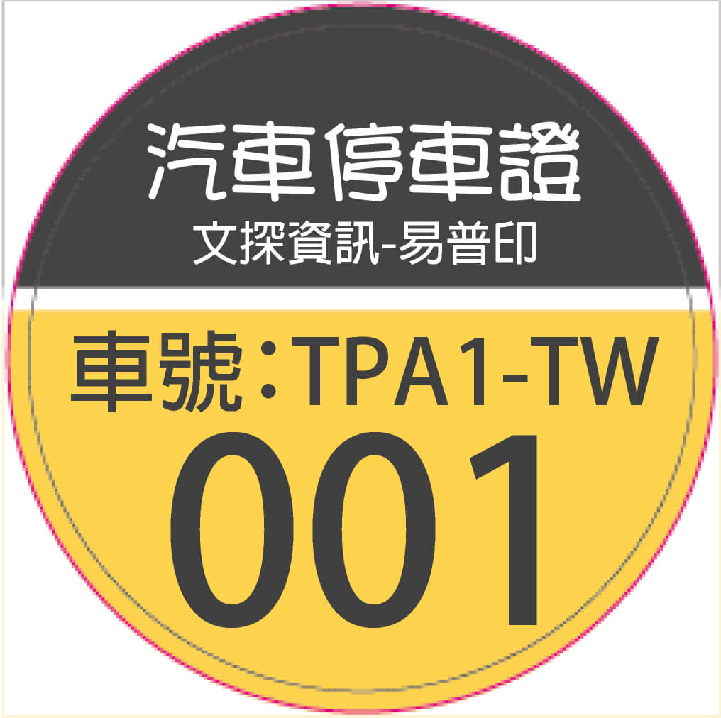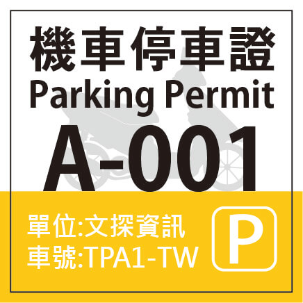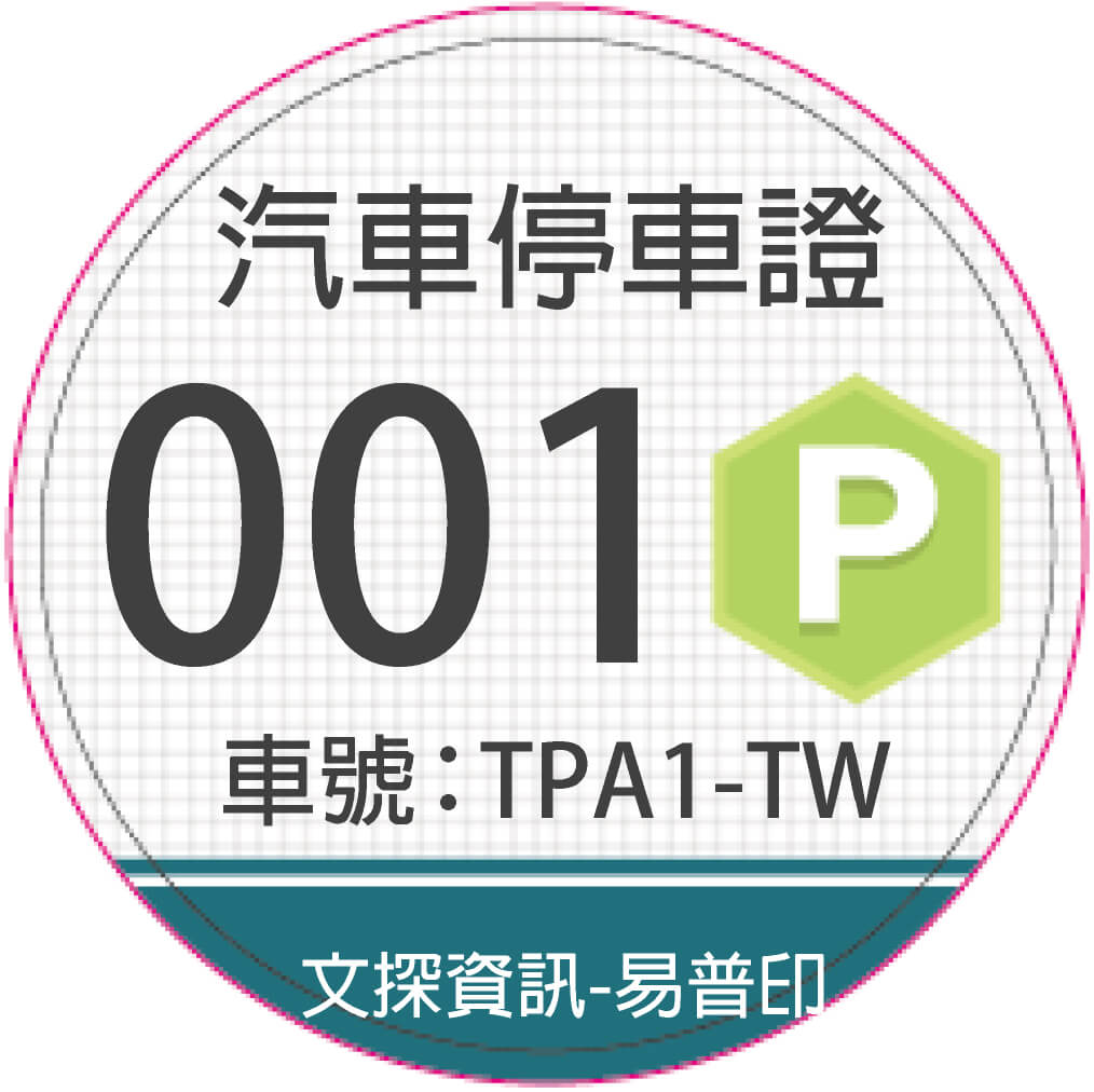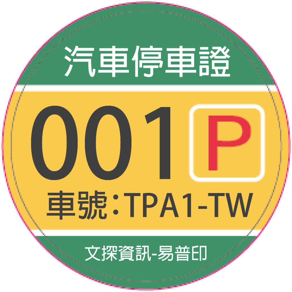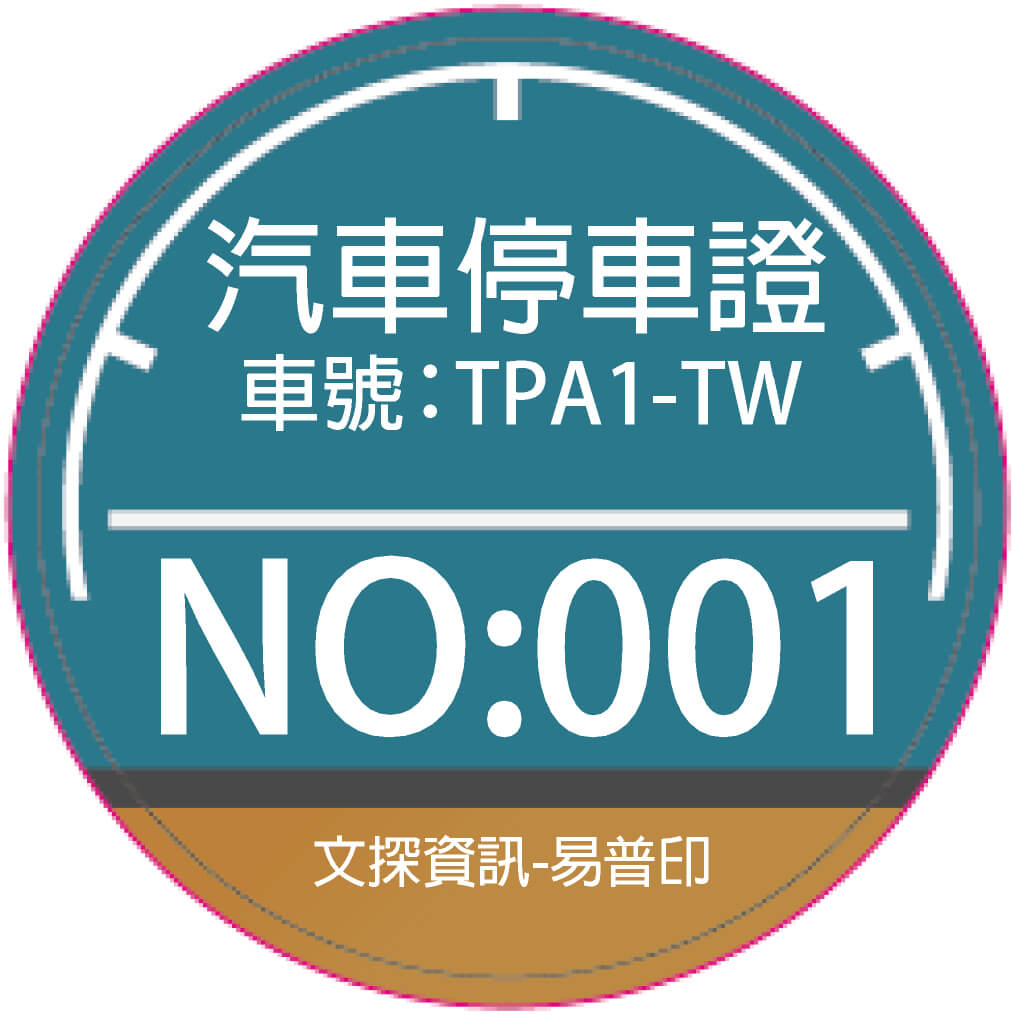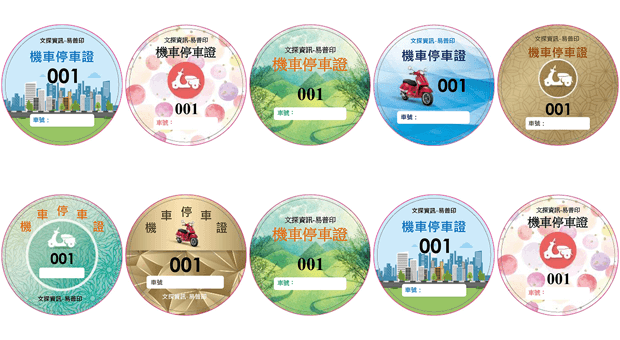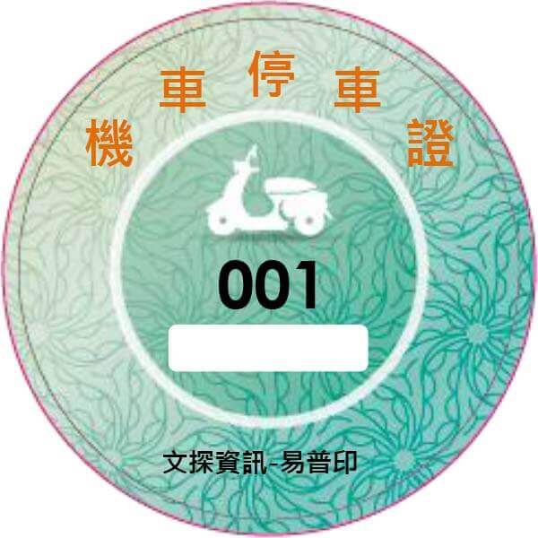 機車/自行車 停車證 方形、圓形,或自行設計任意形狀。 紙質採用防水塑材貼紙,採用單面彩色印刷。