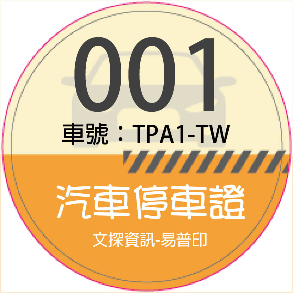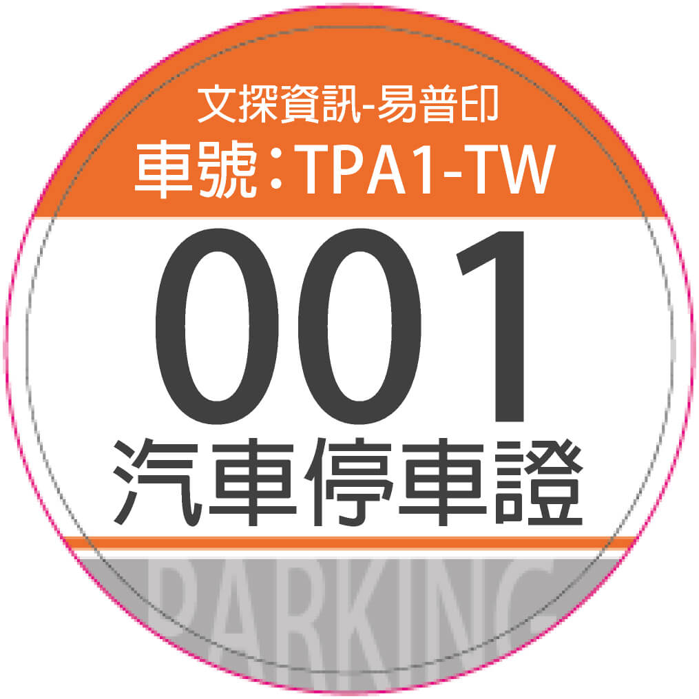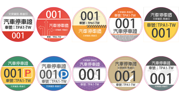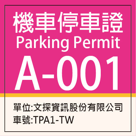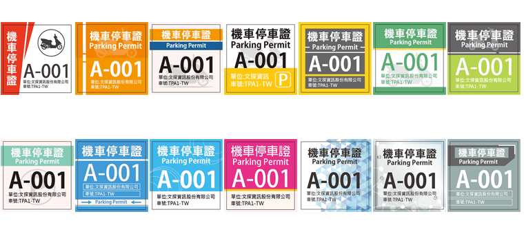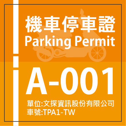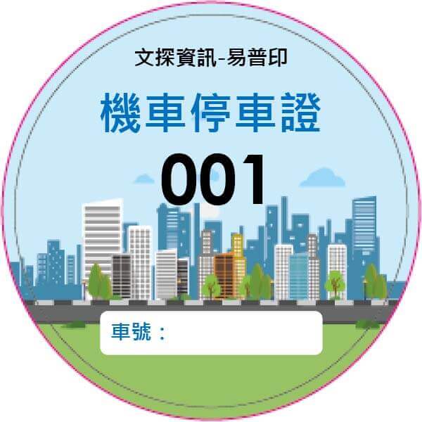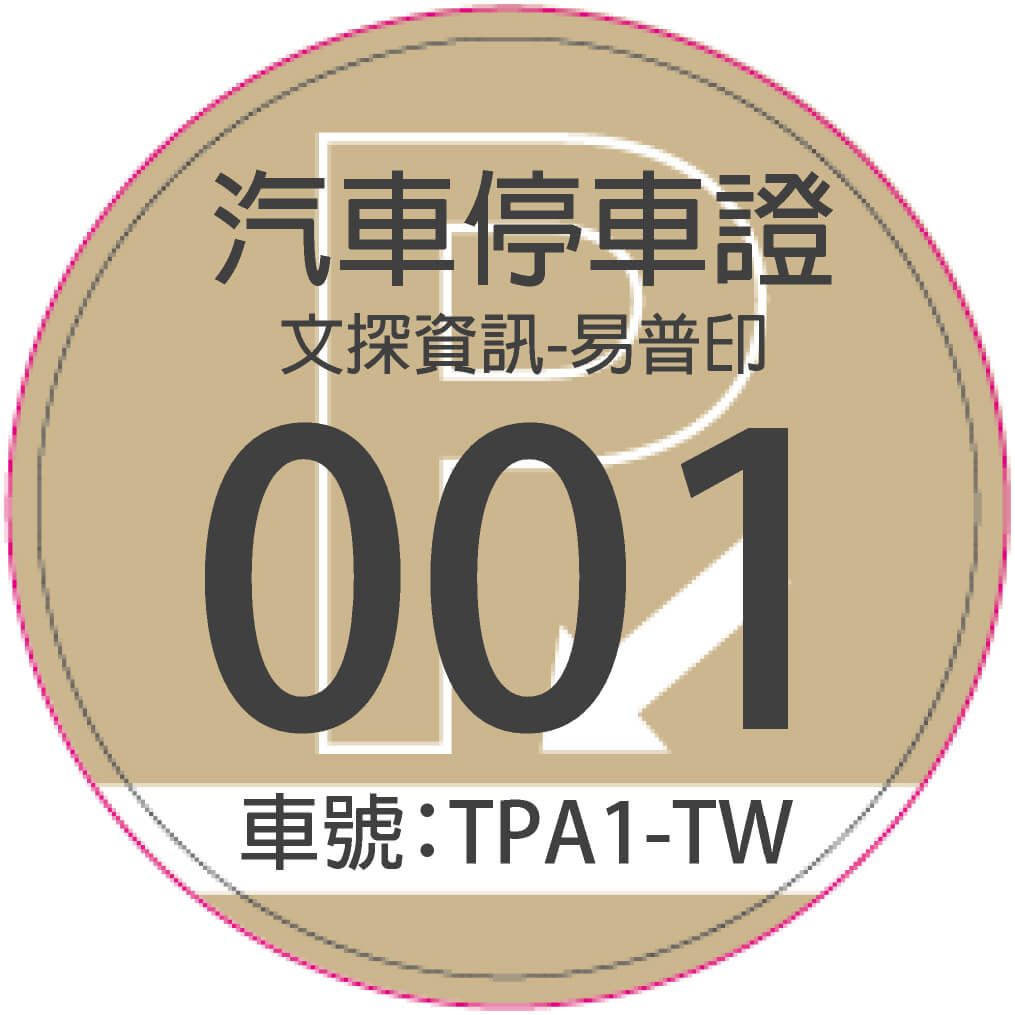 機車/自行車 停車證 方形、圓形,或自行設計任意形狀。 紙質採用防水塑材貼紙,採用單面彩色印刷。