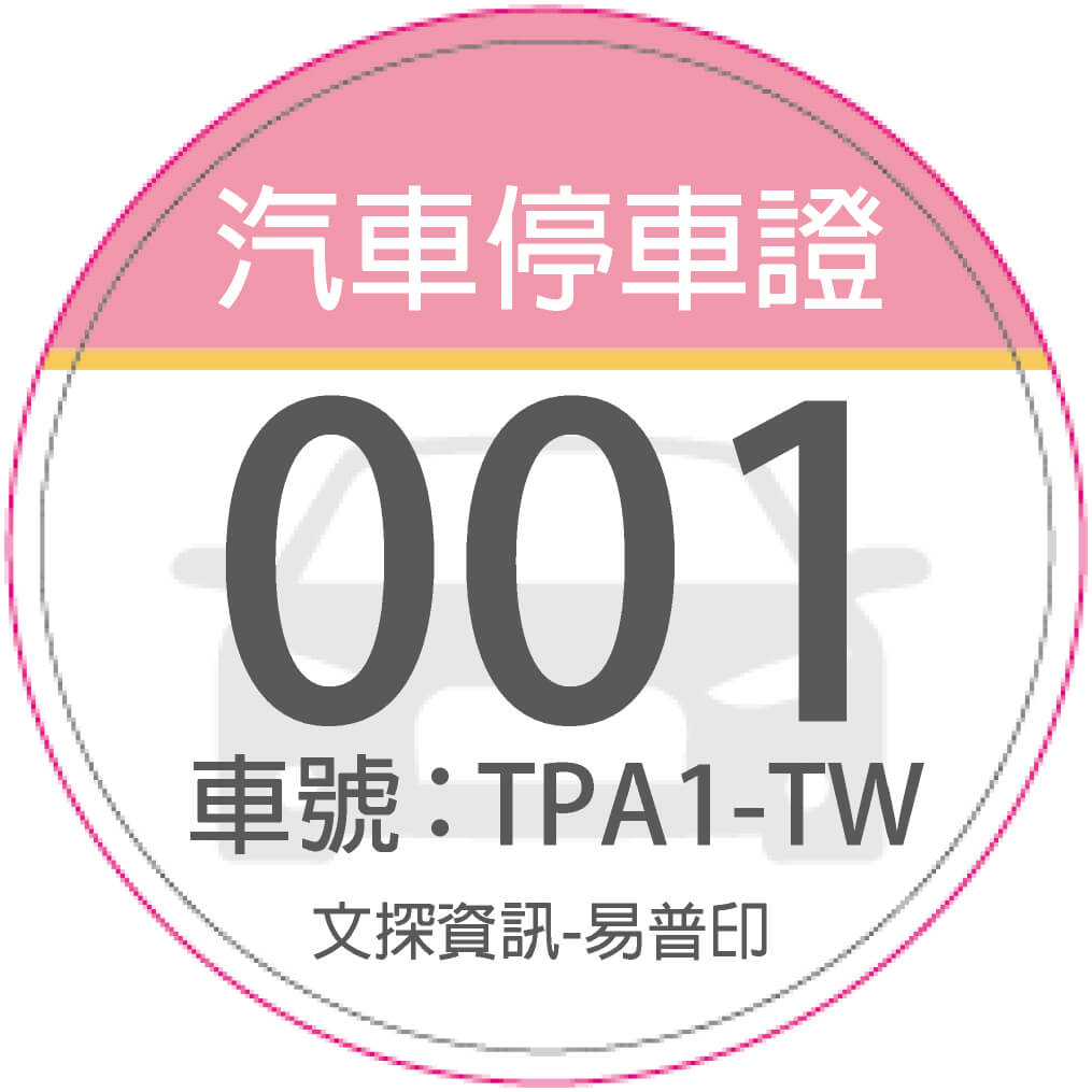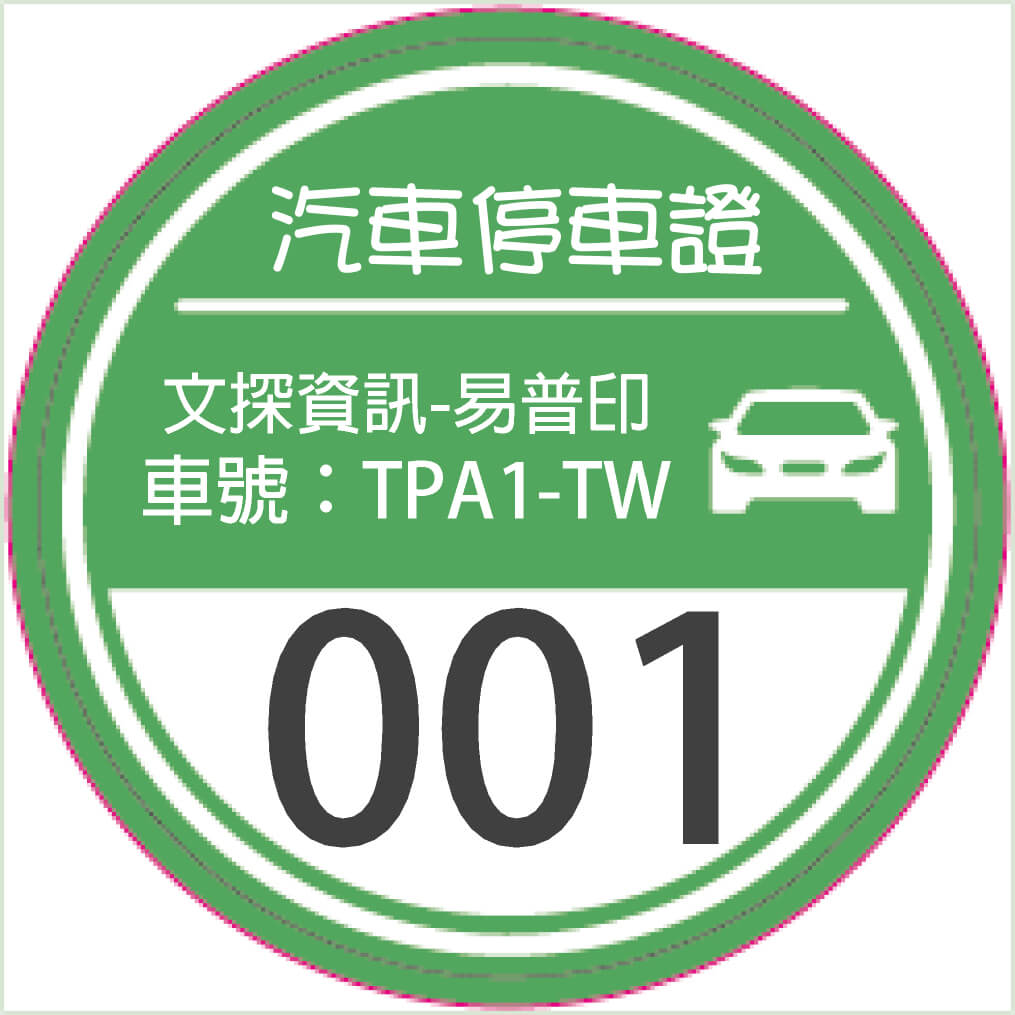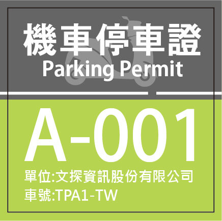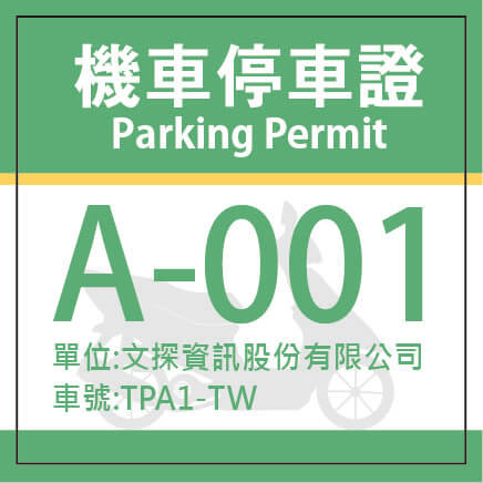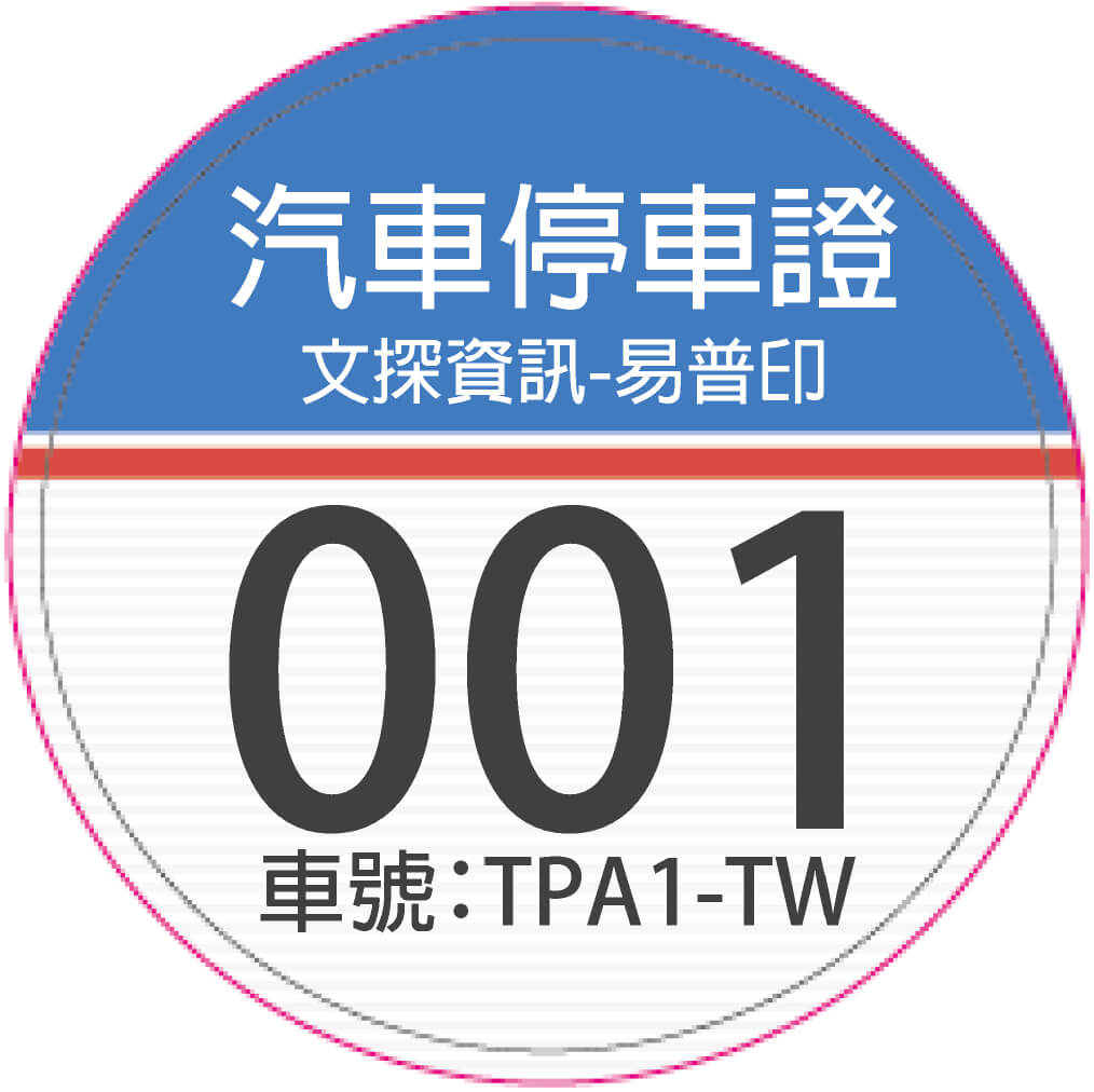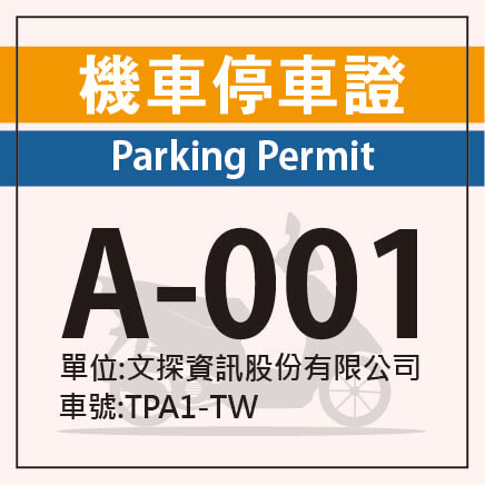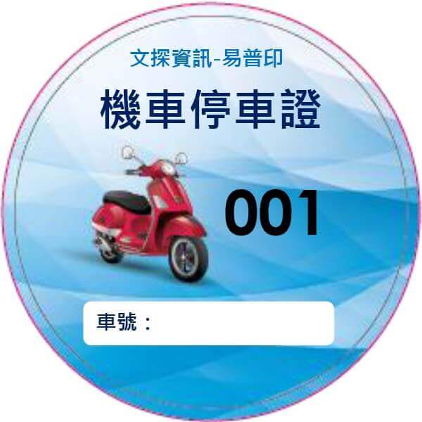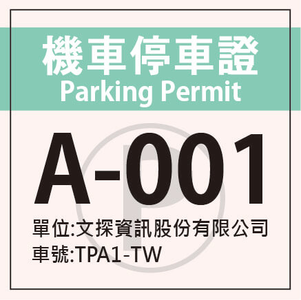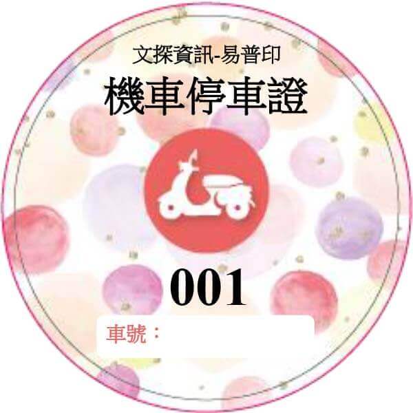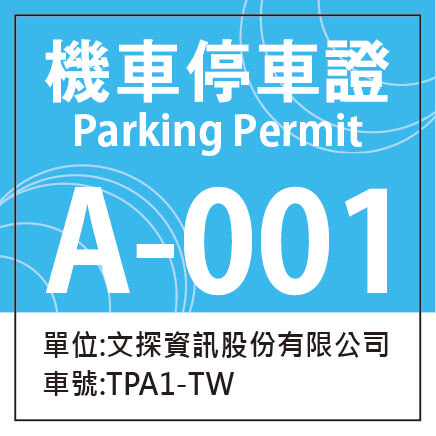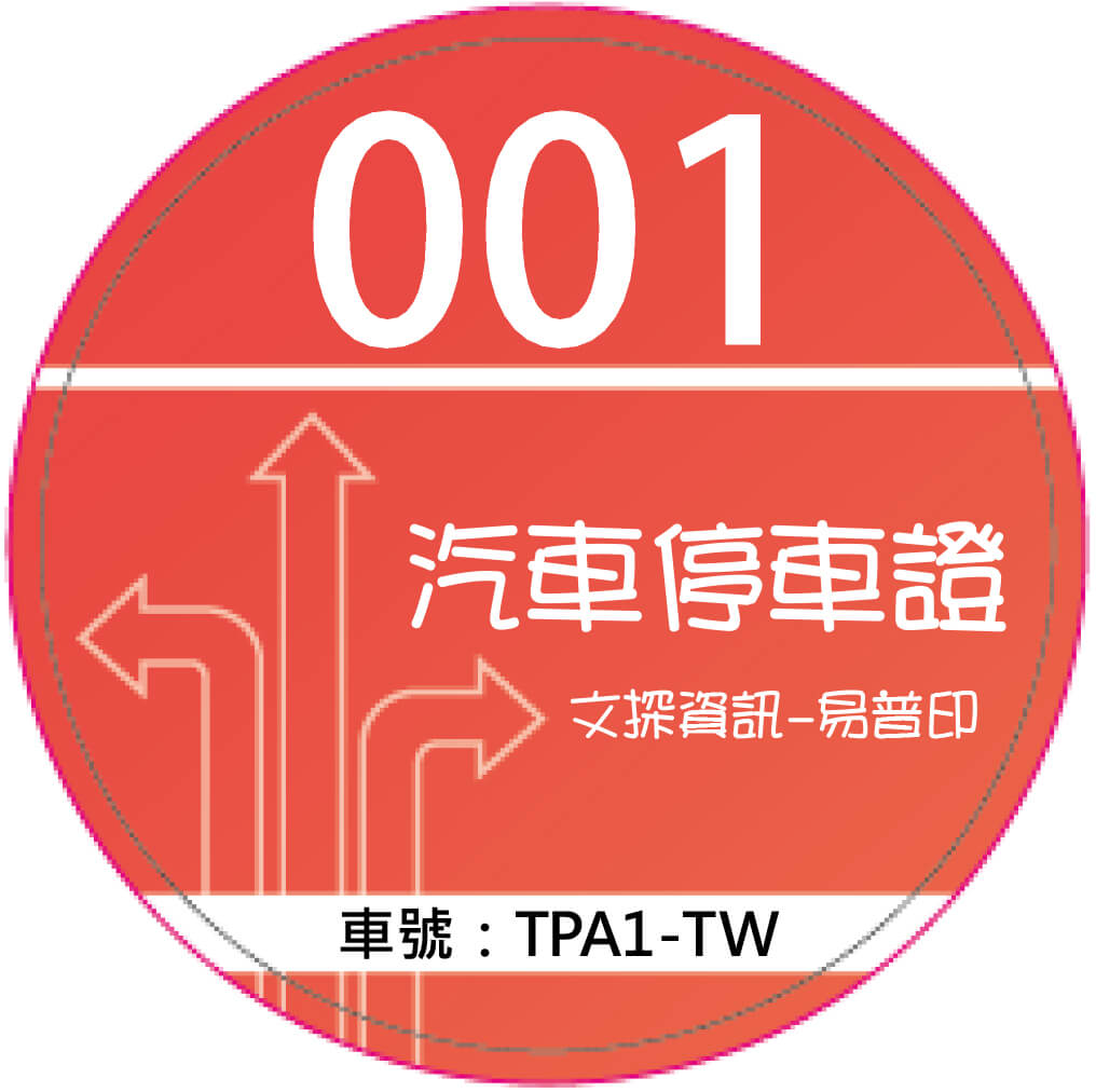 機車/自行車 停車證 方形、圓形,或自行設計任意形狀。 紙質採用防水塑材貼紙,採用單面彩色印刷。