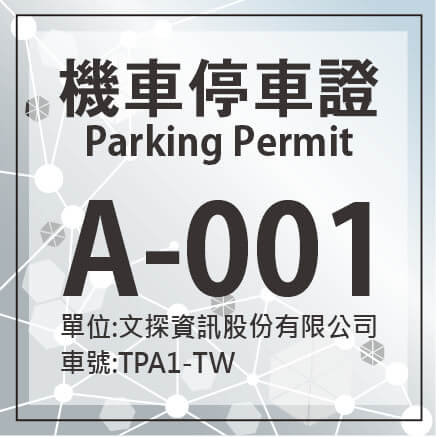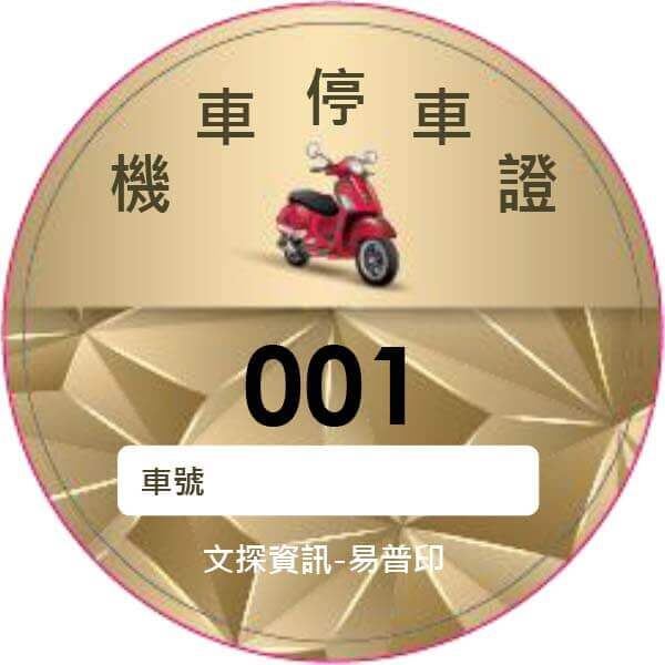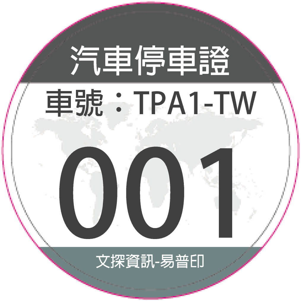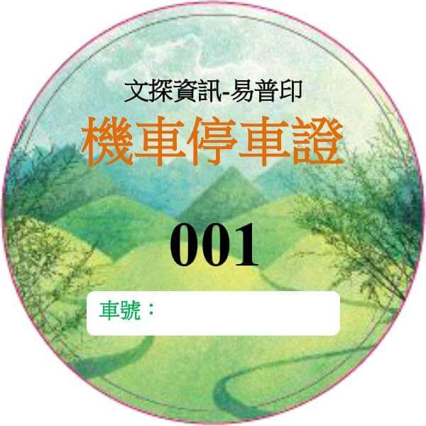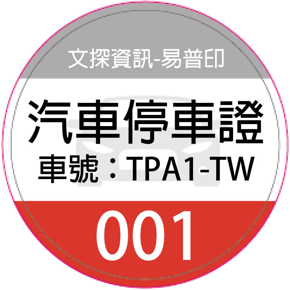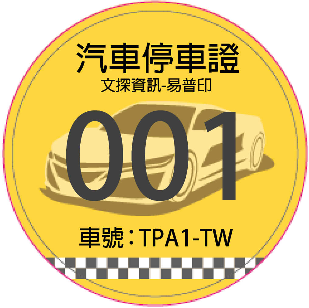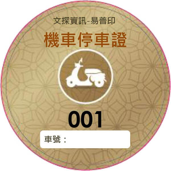 機車/自行車 停車證 方形、圓形,或自行設計任意形狀。 紙質採用防水塑材貼紙,採用單面彩色印刷。